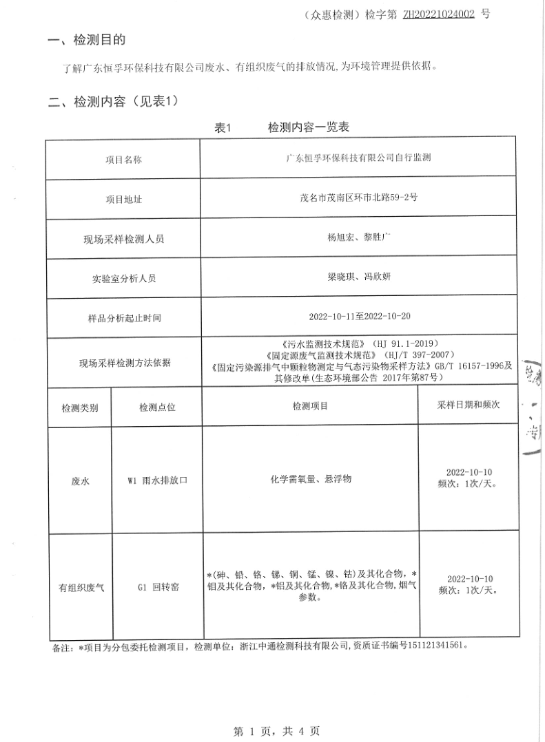 2022年10月NG体育雨水、废气自行监测报告